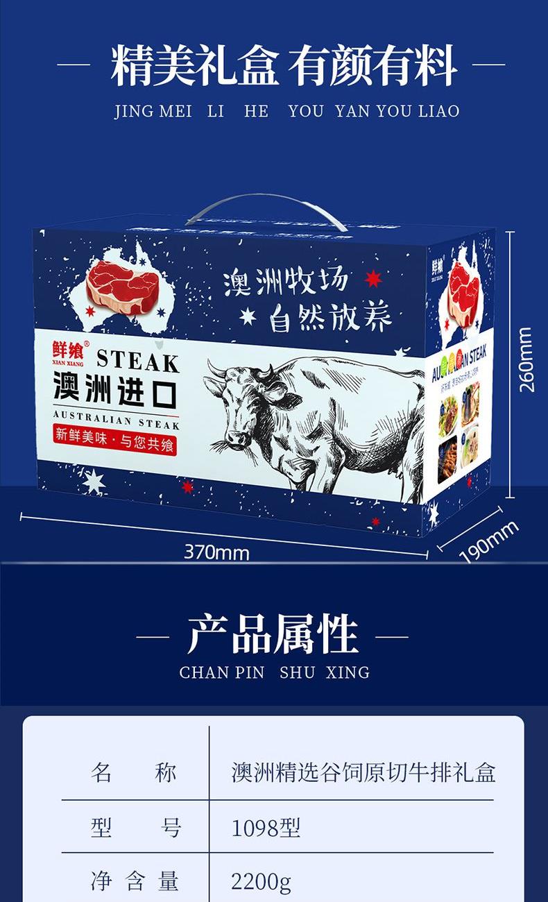鮮饗澳洲精選谷飼原切牛排禮盒1098型2200g