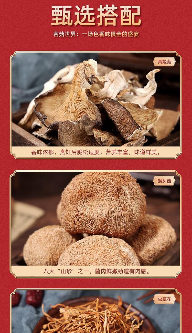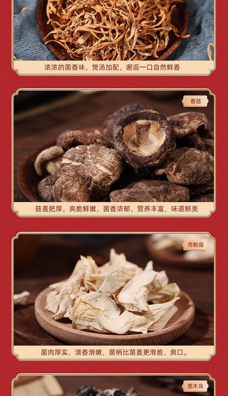 內置:香菇100g 猴頭菇50g 蟲草花50g 真姬菇100g 杏鮑菇100g 黑木耳80g