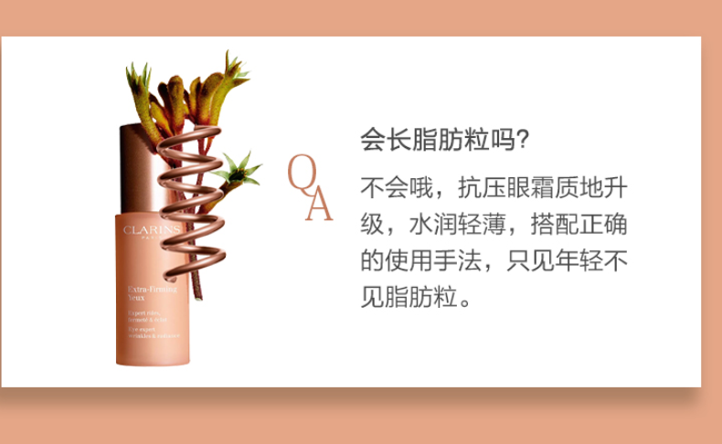 牌: 嬌韻詩(CLARINS) 商品名稱:嬌韻詩全明星眼霜15ml 商品毛重:120.00g 商品產地:法國 功效:提拉緊致 適用人群:成人 類別:乳/霜 規格:11-15mL(g) 適合膚質:任何膚質 國產/進口:進口