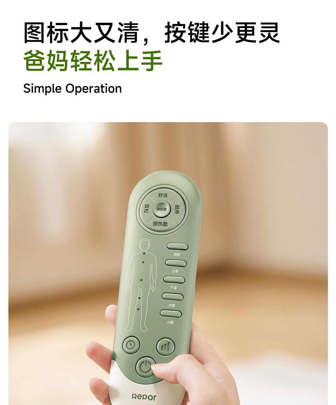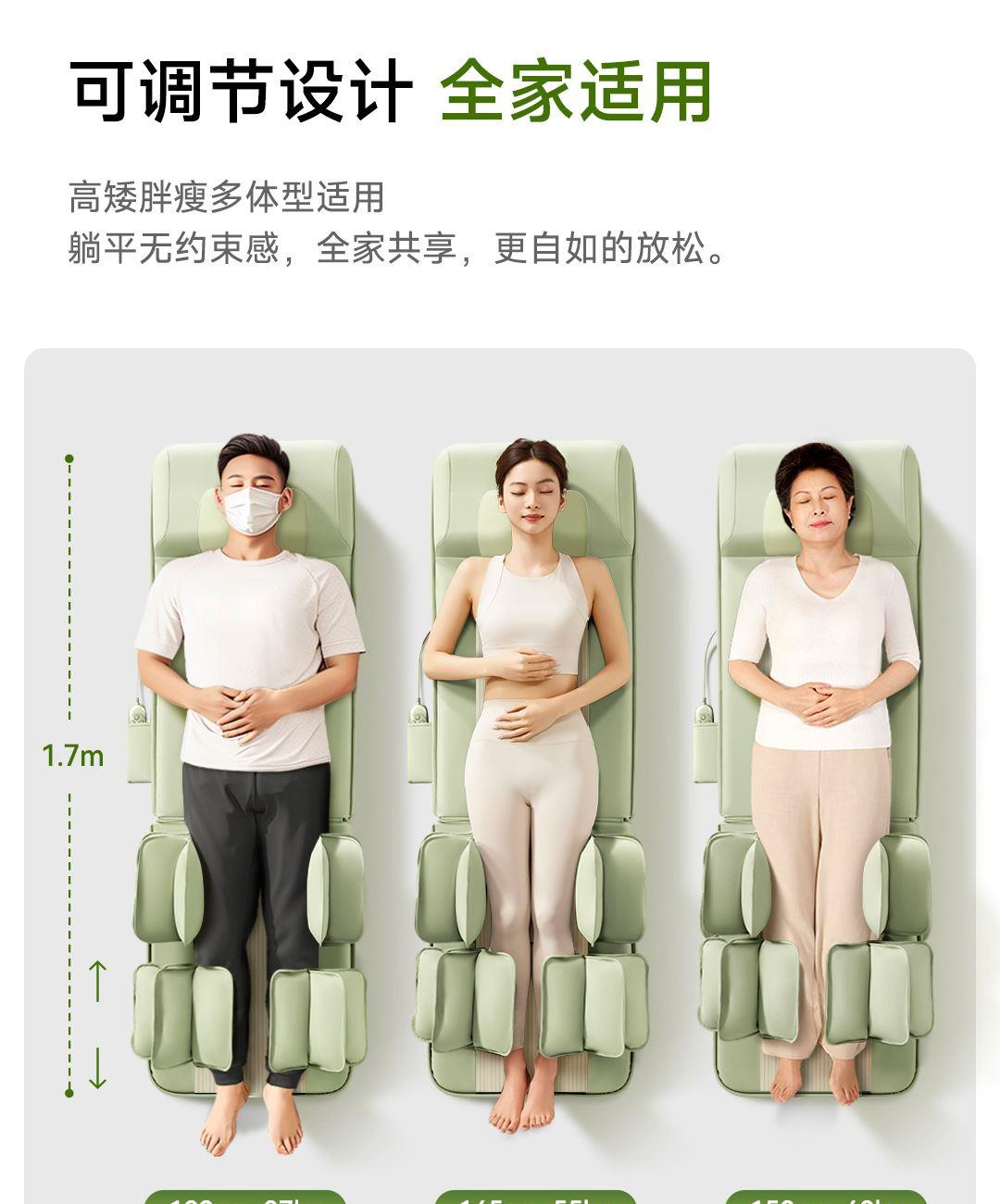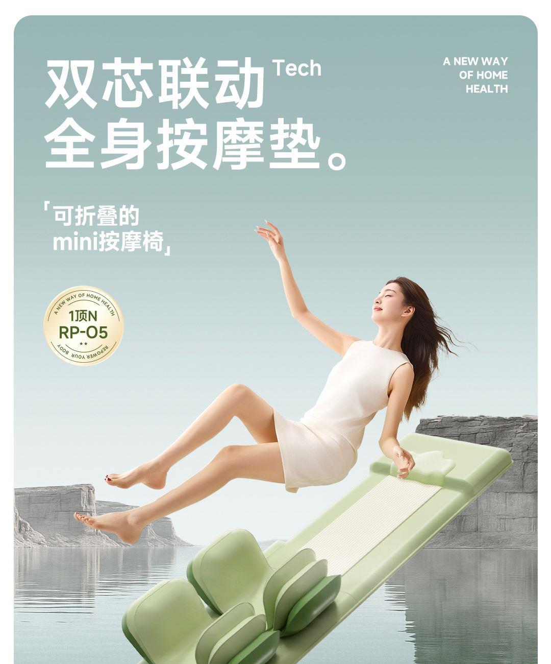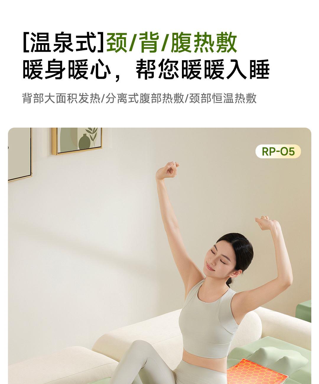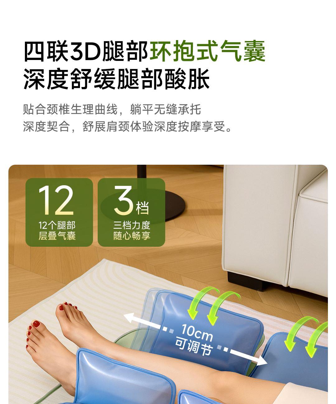 1機多用更超值,宅家按遍肩頸、腰背、大小腿多部位 3段式科學分區(qū),按摩椅同芯技術 躺平式mini按摩椅,180°躺平按摩 身心齊放松 分離式磁吸熱敷墊,熱敷緩沖二合- 暖腹暖腰背 創(chuàng)新柔性導軌應用,主動貼合腰背 機身厚度僅約5.5cm 折疊收納不占地,拒絕笨重 走到哪按到哪 全家人的專屬按摩師,三檔力度模式,滿足不同需求