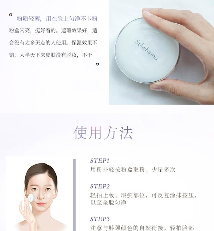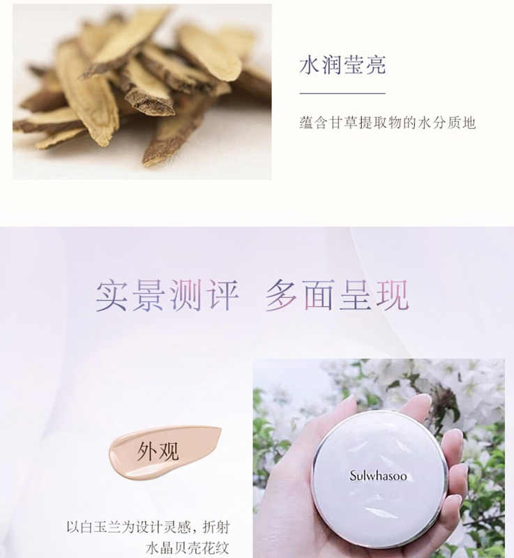 品牌: 雪花秀(Sulwhasoo) 商品名稱:雪花秀木蓮花氣墊 商品毛重:100.00g 商品產地:韓國 功效:遮瑕,提亮膚色 類別:氣墊BB 適合膚質:任何膚質 妝效:自然/裸妝