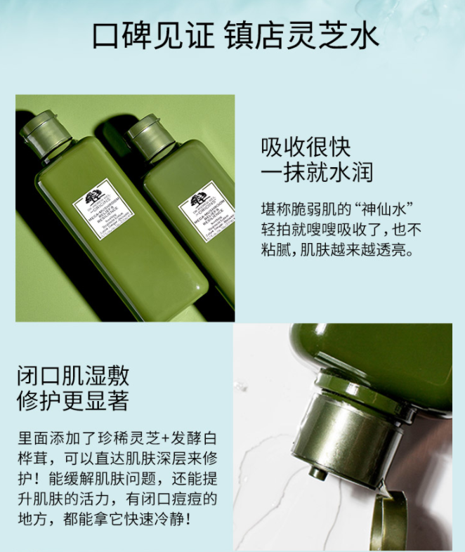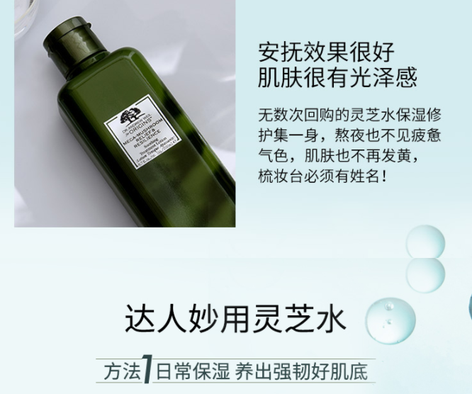品牌: 悅木之源(Origins) 商品名稱:悅木之源靈芝精華水200ml 商品毛重:270.00g 商品產地:美國 功效:補水,保濕,柔膚 類別:精華水 適合膚質:任何膚質 國產/進口:進口