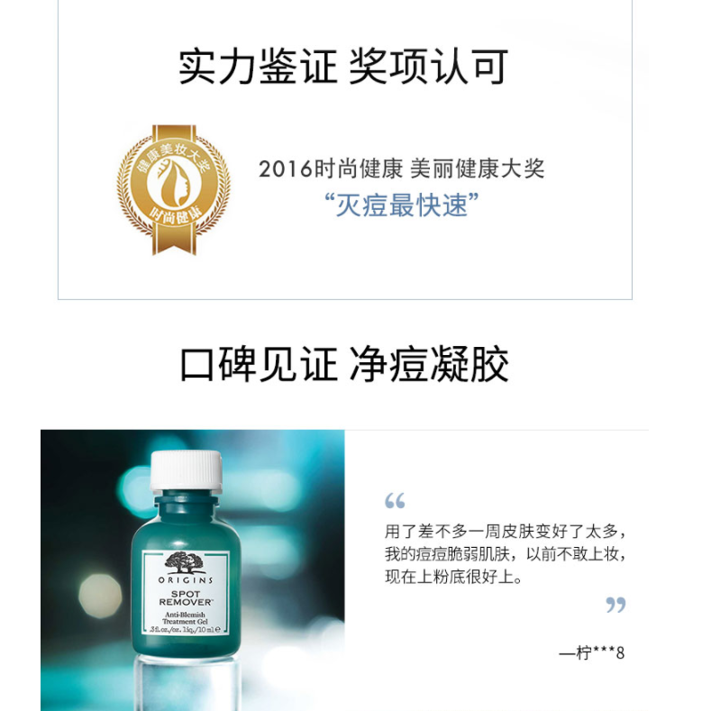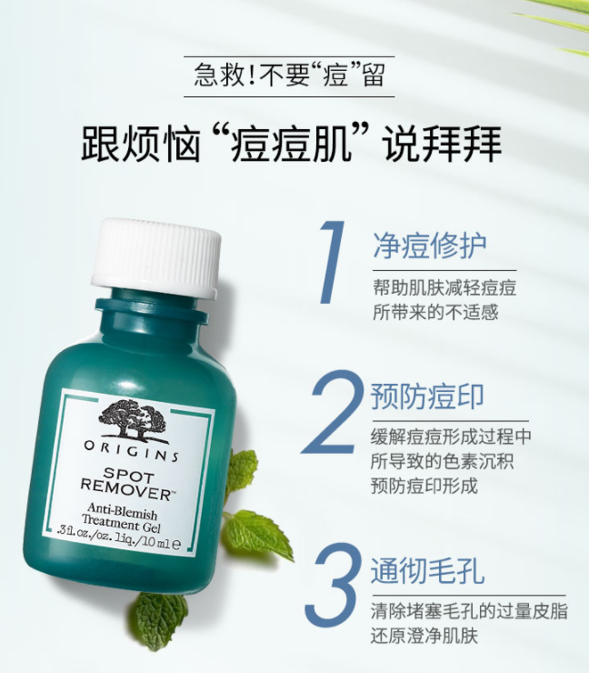 品牌: 悅木之源(Origins) 商品名稱:悅木之源凈痘凝膠10ml 商品毛重:20.00g 商品產地:美國 功效:細致毛孔,舒緩鎮靜,抗痘,修護 適用人群:成人 規格:5-30g/mL 適合膚質:任何膚質 國產/進口:進口