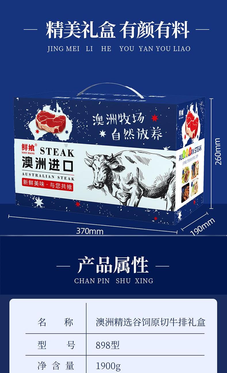 鮮饗澳洲精選谷飼原切牛排禮盒898型1900g