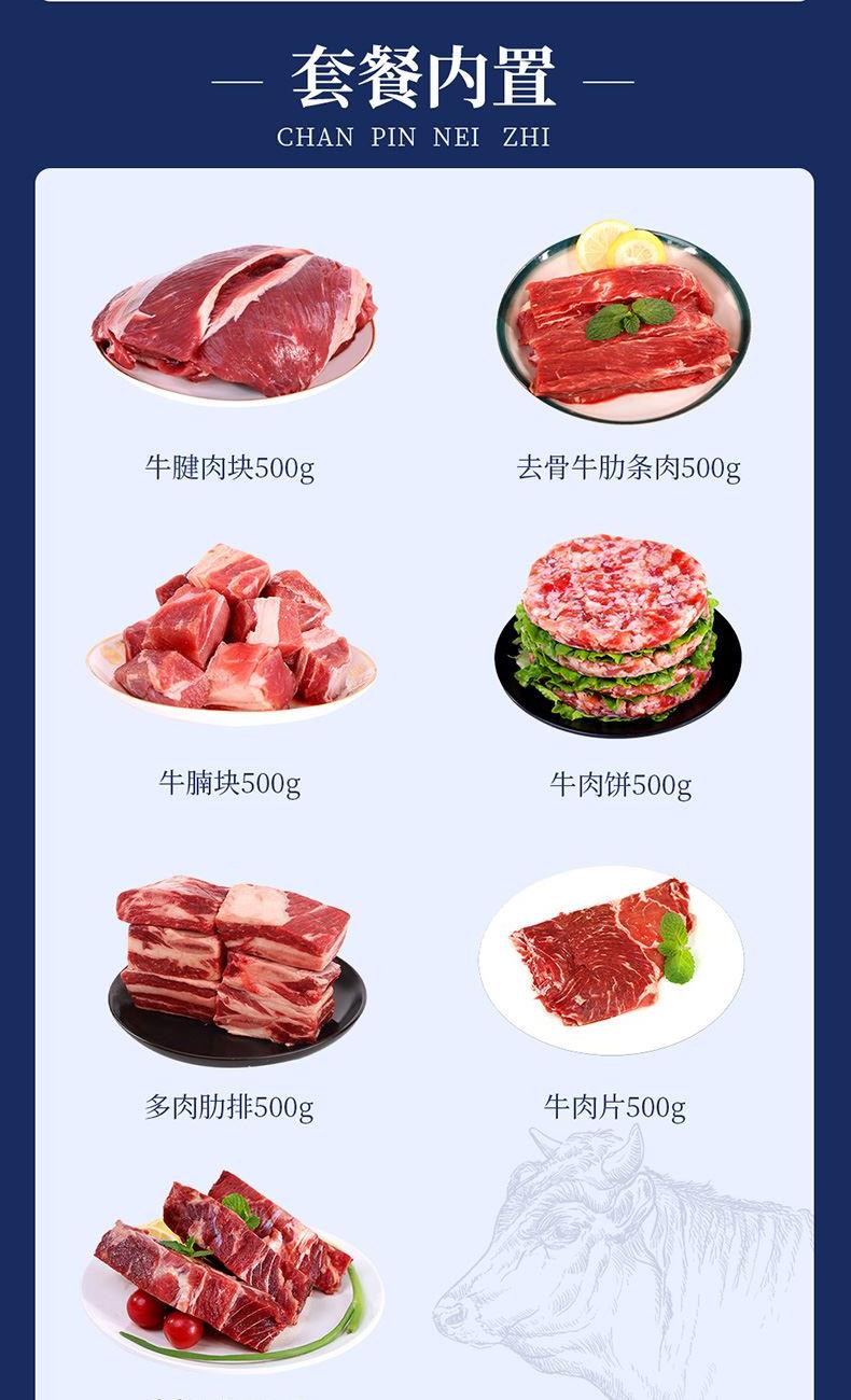 配置:澳洲谷飼安格斯牛腱肉塊500g 澳洲谷飼安格斯去骨牛肋條肉500g 澳洲谷飼安格斯牛腩肉塊500g 澳洲谷飼安格斯牛肉餅500g 澳洲谷飼安格斯牛肉片500g 澳洲谷飼安格斯多肉肋排500g 澳洲谷飼安格斯牛蝎子500g*2 產品賣點: 1.禮盒包含了肉、骨,在家也能做出滿滿的美味佳肴。 2.原切肉不添加任何添加劑,食用更放心! 3.禮盒精美承載心意與祝福!